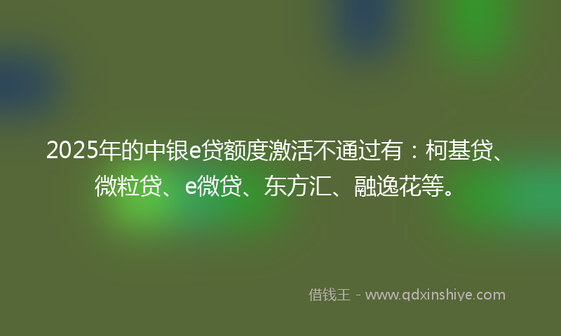 2025年的中银e贷额度激活不通过有:柯基贷、微粒贷、e微贷、东方汇、融逸花等。