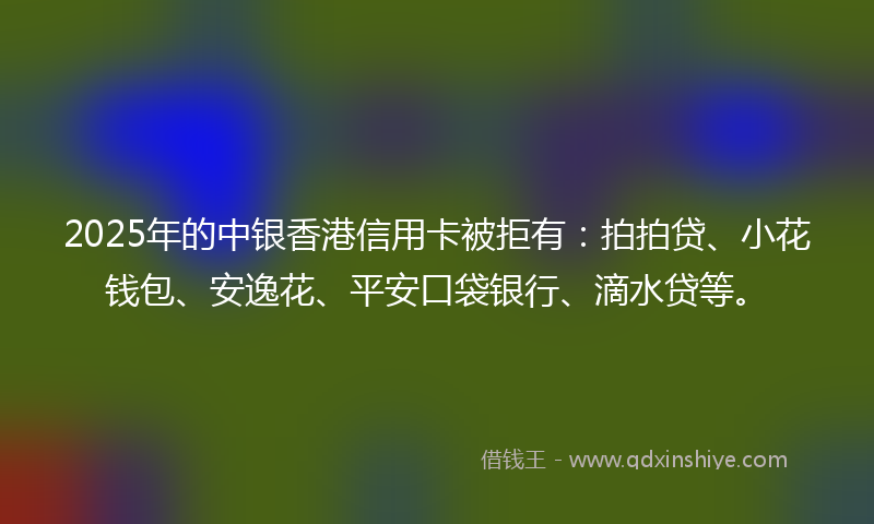 2025年的中银香港信用卡被拒有:拍拍贷、小花钱包、安逸花、平安口袋银行、滴水贷等。