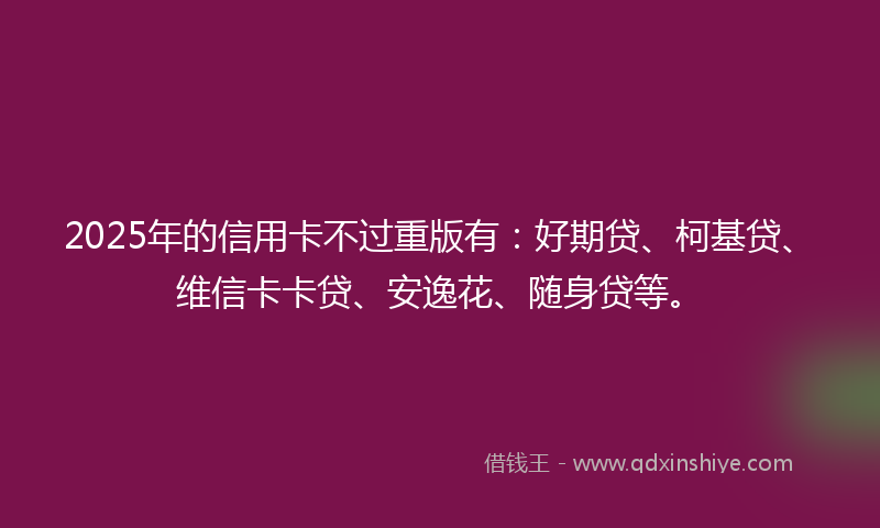 2025年的信用卡不过重版有:好期贷、柯基贷、维信卡卡贷、安逸花、随身贷等。