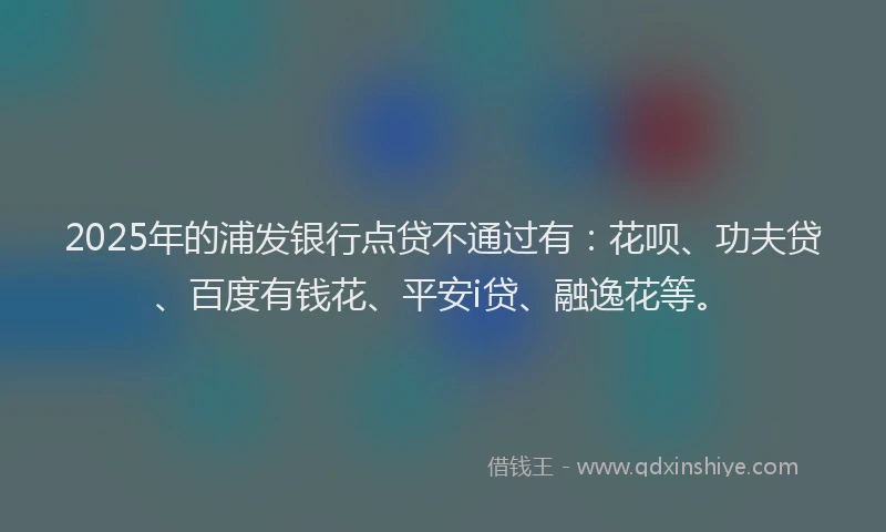 2025年的浦发银行点贷不通过有:花呗、功夫贷、百度有钱花、平安i贷、融逸花等。