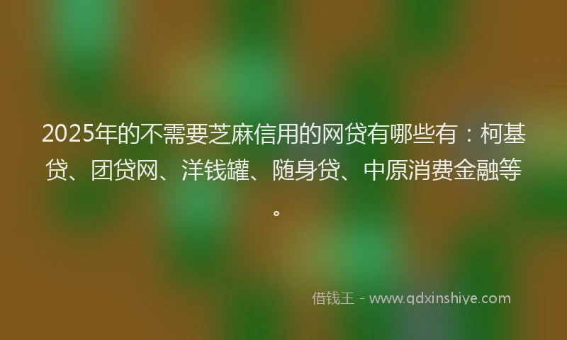 2025年的不需要芝麻信用的网贷有哪些有:柯基贷、团贷网、洋钱罐、随身贷、中原消费金融等。