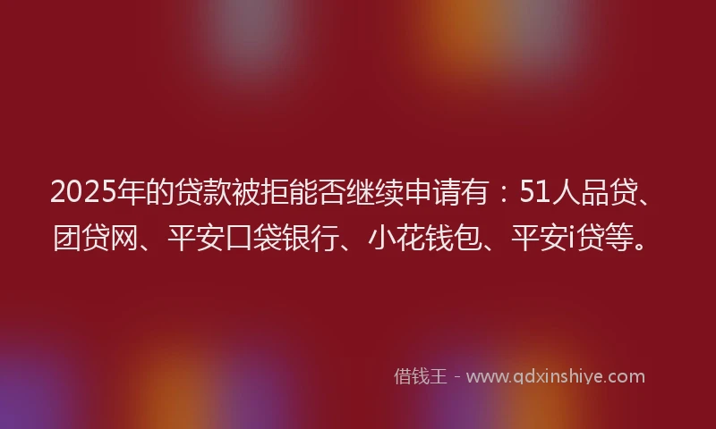 2025年的贷款被拒能否继续申请有:51人品贷、团贷网、平安口袋银行、小花钱包、平安i贷等。