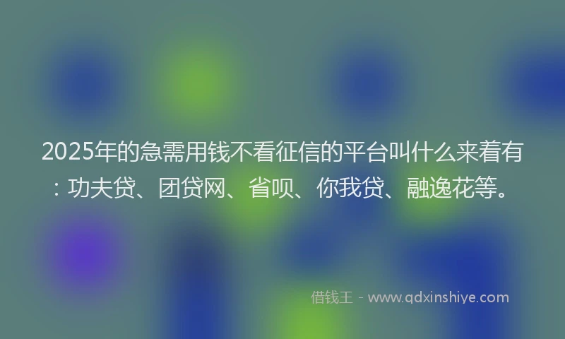 2025年的急需用钱不看征信的平台叫什么来着有:功夫贷、团贷网、省呗、你我贷、融逸花等。