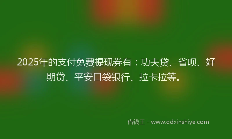2025年的支付免费提现券有:功夫贷、省呗、好期贷、平安口袋银行、拉卡拉等。