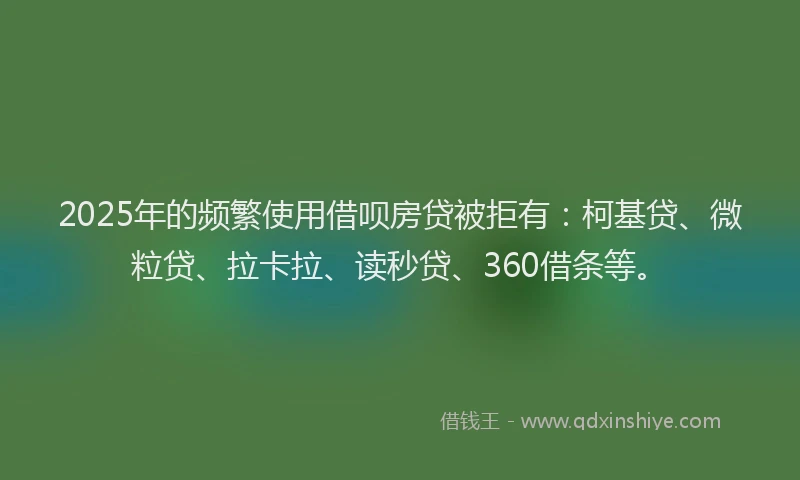 2025年的频繁使用借呗房贷被拒有:柯基贷、微粒贷、拉卡拉、读秒贷、360借条等。