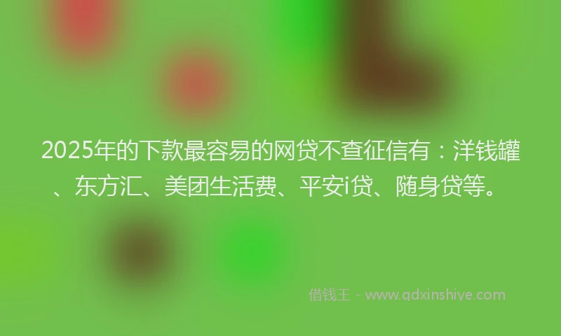 2025年的下款最容易的网贷不查征信有:洋钱罐、东方汇、美团生活费、平安i贷、随身贷等。