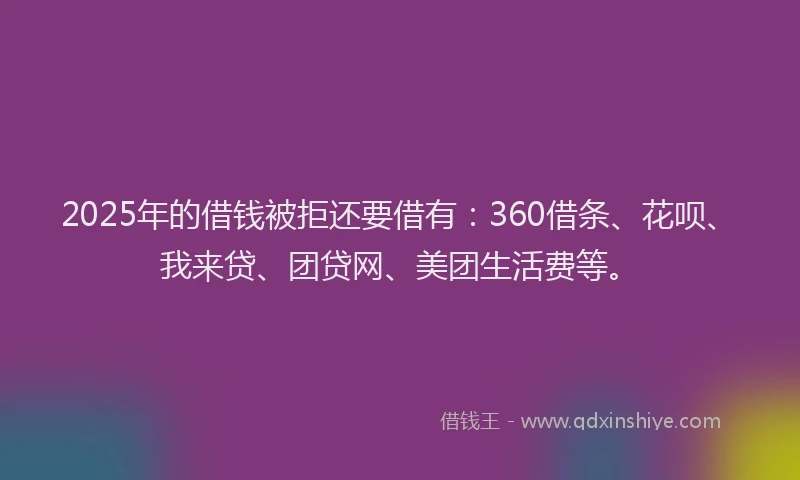 2025年的借钱被拒还要借有:360借条、花呗、我来贷、团贷网、美团生活费等。