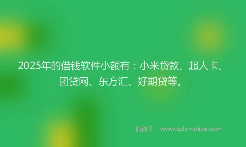 2025年的借钱软件小额有:小米贷款、超人卡、团贷网、东方汇、好期贷等。