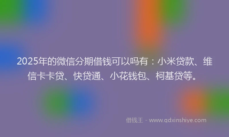 2025年的微信分期借钱可以吗有:小米贷款、维信卡卡贷、快贷通、小花钱包、柯基贷等。