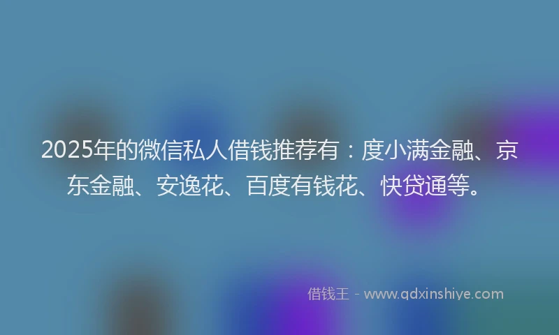 2025年的微信私人借钱推荐有:度小满金融、京东金融、安逸花、百度有钱花、快贷通等。