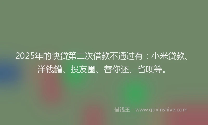 2025年的快贷第二次借款不通过有:小米贷款、洋钱罐、投友圈、替你还、省呗等。