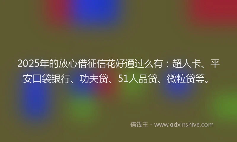 2025年的放心借征信花好通过么有:超人卡、平安口袋银行、功夫贷、51人品贷、微粒贷等。