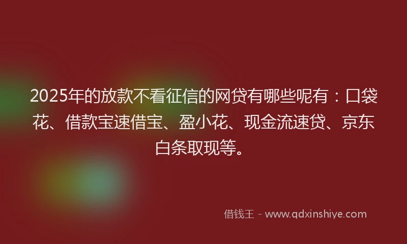2025年的放款不看征信的网贷有哪些呢有:口袋花、借款宝速借宝、盈小花、现金流速贷、京东白条取现等。