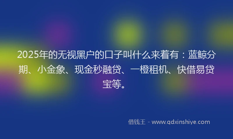 2025年的无视黑户的口子叫什么来着有:蓝鲸分期、小金象、现金秒融贷、一橙租机、快借易贷宝等。